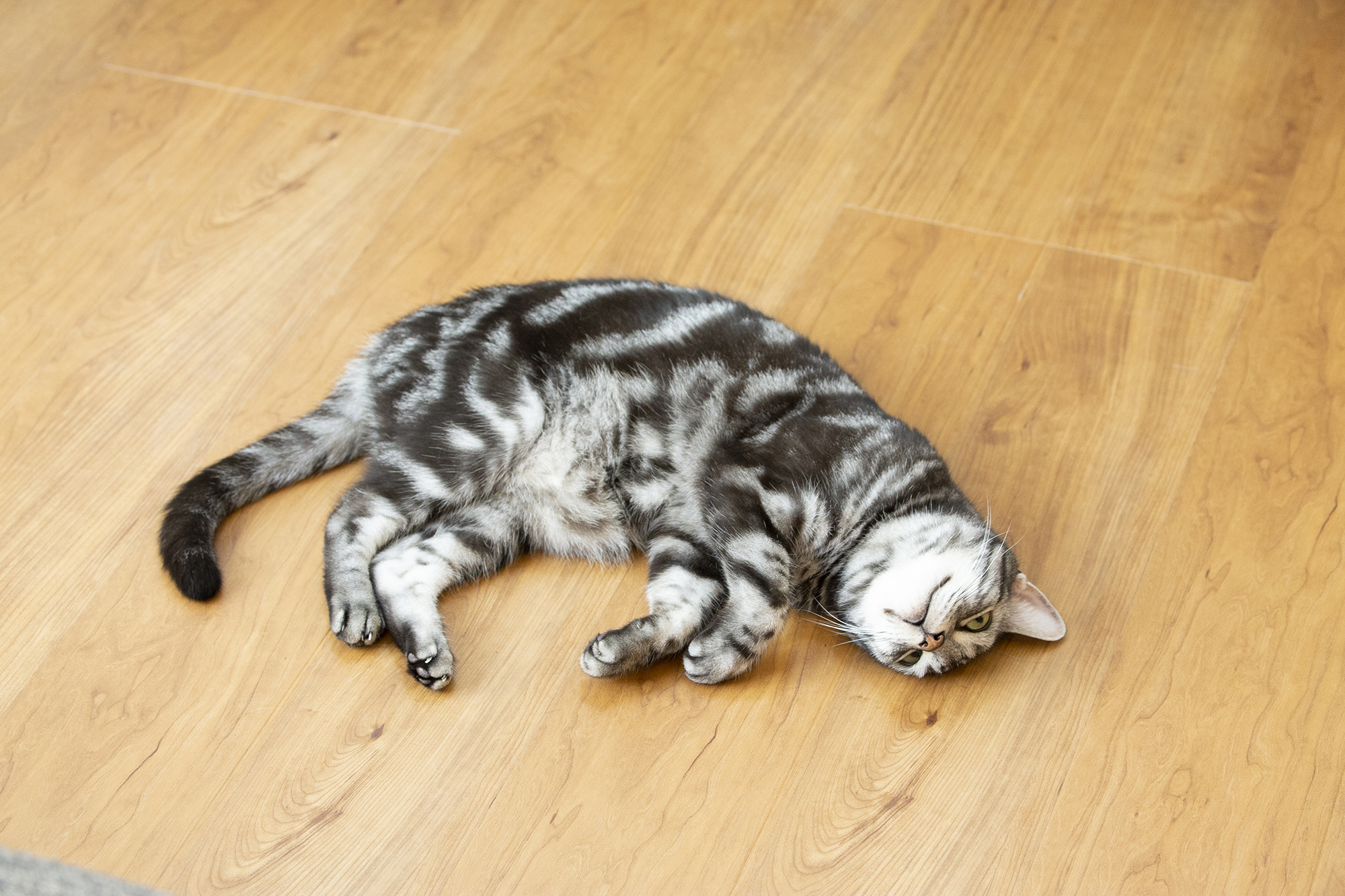ぷにっとした肉球がみえる、透明のキャットステップはついつい眺めてしまいます。